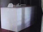 1997Hoge 'tafel' van spaanplaat. Door het vierkante gat kun je onder de tafel kijken. Op de binnenkant staan teksten.
