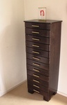 1994Kast met gedicht, in elke lade ligt een regel geborduurd. In het project 'Laat de ladenkast maar schuiven' verbleef deze kast gedurdende een jaar elke maand bij een andere instelling of bedrijf. (Meubelvakwerk onder leiding van Sonja Setz)