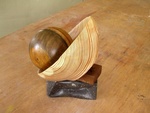 2010LESPAKKET. Ook voor de lespakketten heb ik geen extra materiaal gekocht (dan eens een boortje of een paar vellen schuurpapier). Het materiaal waar de beelden van gemaakt zijn, zijn resten hout, steen, textiel en dergelijke die ik nog in mijn atelier had staan, of waar ik op straat tegenaan liep. Ik vond dat passen bij het thema. Verspilling hier / armoede daar, dat vond ik niet passen. Met respect voor wat er is, wil ik niets als waardeloos weggooien, maar het liever nieuwe waarde geven, een nieuw leven. De kom staat voor eten, de bal voor spel, terwijl de symbolen op exacte schoolvakken doelen. De sokkel uit Belgisch hardsteen maakt tevens deel uit van het eigenlijke beeld. Voor filmpje http://youtu.be/9TseIey_lM4